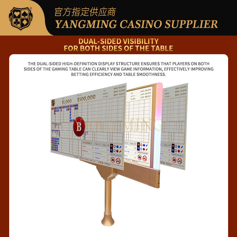 Display del casinòIl dispositivo è dotato di illuminazione a LED luminosa e di un design sottile e moderno, che garantisce una visibilità chiara da entrambi i lati deltabellaIdeale per il Baccarat e altri giochi da tavolo, supporta contenuti personalizzabili.display multilingue, e il marchio del logo per migliorare l'efficienza della gestione del gioco e la presentazione complessiva del casinò.